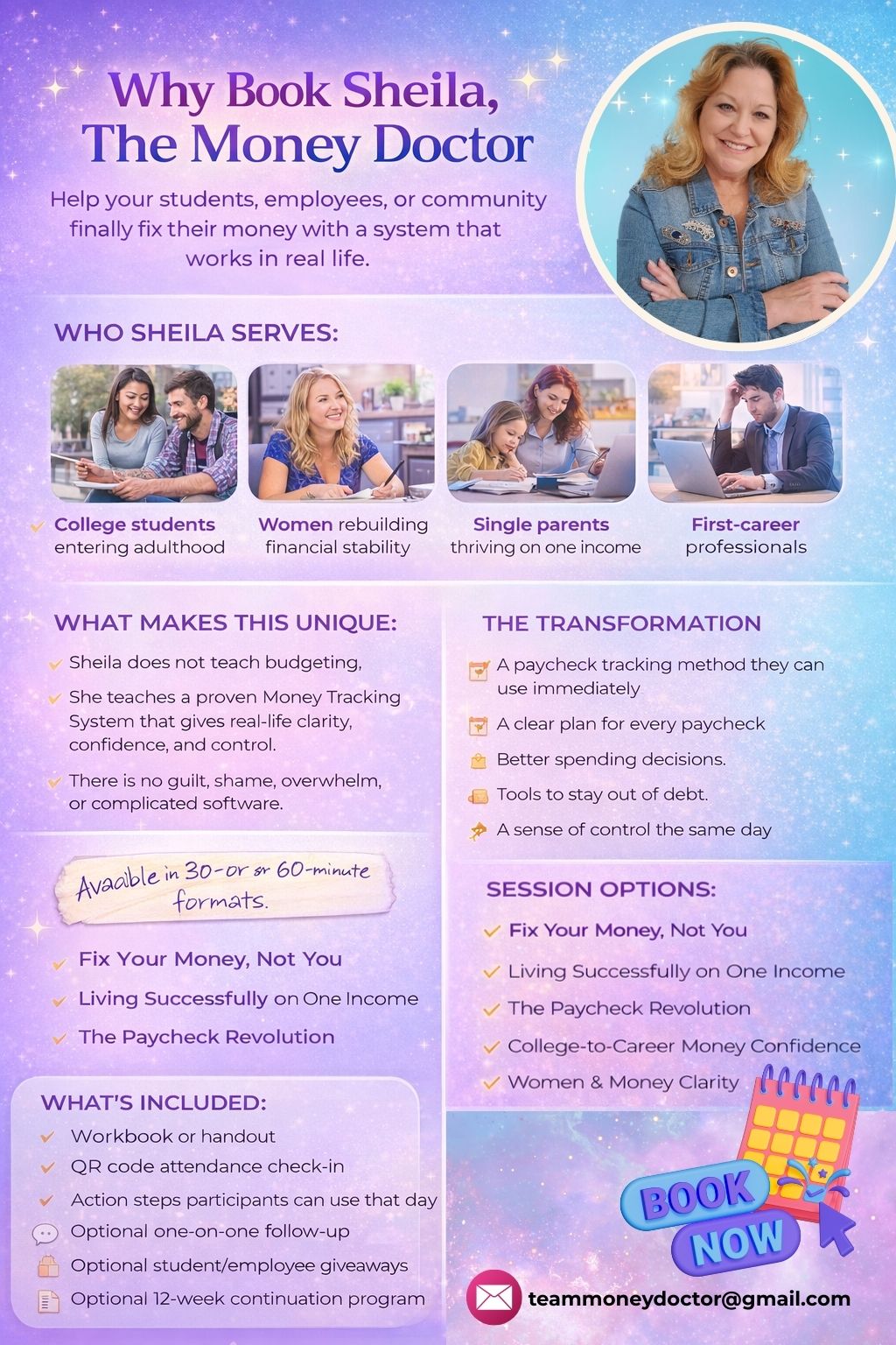 Sheila provides practical tips and helpful worksheets, coupled with personal stories and humor, to help you get control of your money once and for all! I highly recommend her book and her YouTube videos!